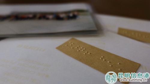 每張照片的背面都貼有合影地點(diǎn)的盲文 記者曹月/攝