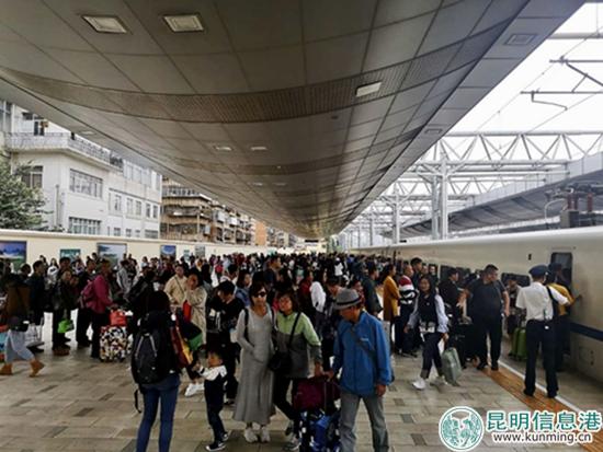 昆明信息港訊 記者上官艷君 從中國(guó)鐵路昆明局集團(tuán)有限公司獲悉,10月4日,昆明局集團(tuán)公司預(yù)計(jì)發(fā)送旅客21萬(wàn)人,仍以旅游客流為主,主要加開(kāi)昆明南至大理、富寧、南寧東動(dòng)車組列車,昆明至麗江、宣威、河口北、羅平等普速列車,共計(jì)加開(kāi)列車12對(duì)。