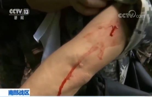 巡邏的戰(zhàn)士被螞蟥咬傷