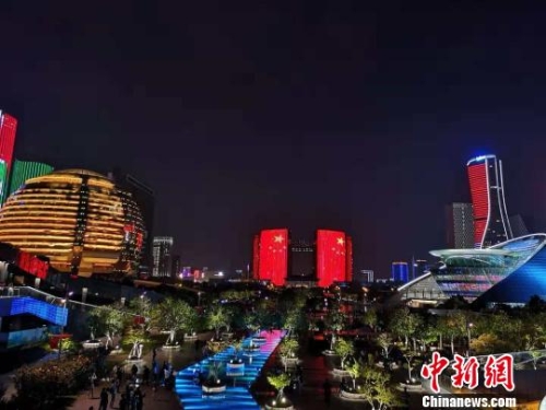 中新網(wǎng)杭州10月6日電 (見習(xí)記者 范宇斌)錢塘江畔,華燈初上,市民於建紅跟著兒子漫步城市陽臺(tái),欣賞著錢江兩岸五彩斑斕的燈光秀。這一夜,錢江新城高樓群組成的巨幅國旗與“我愛你中國”字樣,通過中央電視臺(tái)向全球直播,這一份喜悅,從杭州傳向千家萬戶。