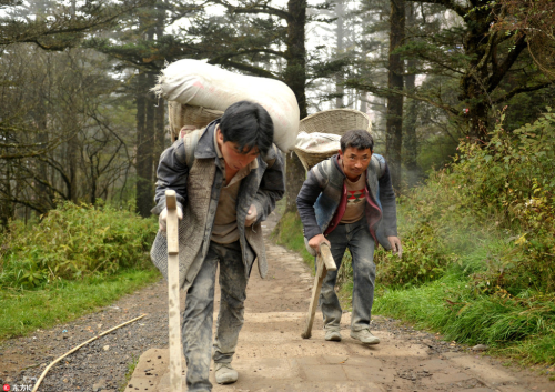 正是這些背山工用汗水鋪平了游人腳下的路橋,讓游人暢行無阻。