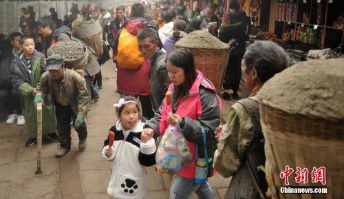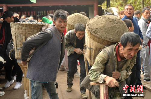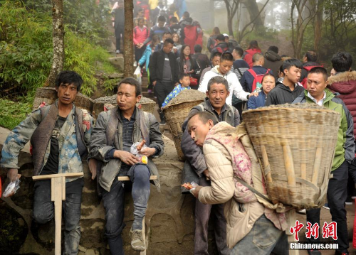 峨眉山金頂背山工的年齡從20多歲到50多歲不等,有男有女。