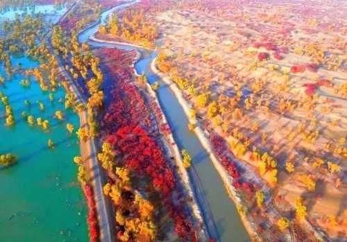 秋季的新疆大地,仿佛同一時(shí)間打開了顏料盒,各種色彩迸發(fā)出來,將山川大地裝扮得如同油畫。北疆的喀納斯,火紅的花楸樹、金黃的白樺樹、蔥綠的針葉樹在藍(lán)天白云的映照下,層層疊疊;南疆塔里木河秋染胡楊水泛金……