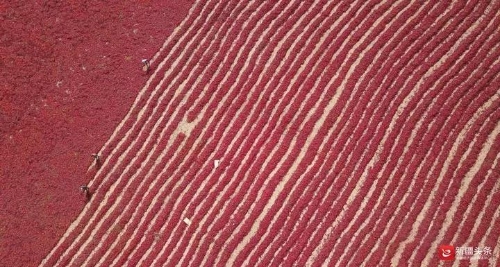 江蘇游客陳先生認(rèn)為,新疆的“曬秋”和南方不同,是一種氣勢磅礴的美,各種農(nóng)作物在廣袤的大地鋪開,五顏六色非常漂亮。在南疆地區(qū)的焉耆縣,幾百畝的紅辣椒晾曬場,火紅的一大片,一眼望不到頭,“新疆的曬秋場面特別壯觀?!标愊壬f。