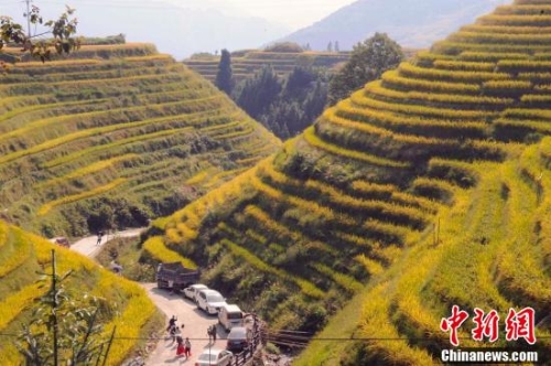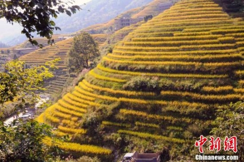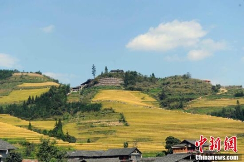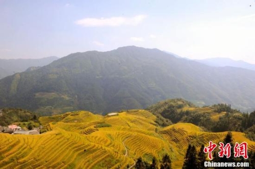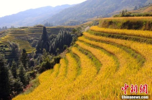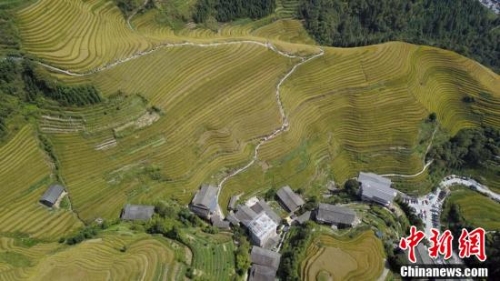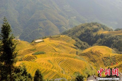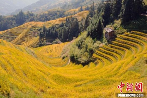 秋天的龍脊梯田成了金黃色的海洋。