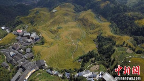 國慶假期,秋天的廣西龍勝龍脊梯田成了金黃色的海洋,悄悄上演了一場秋色大片。