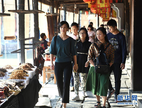浙江省紹興市安昌古鎮(zhèn)舉辦多項特色活動吸引游客,國慶期間共接待旅游者15.68萬人次,比去年同期增長40%。(新華社 記者翁忻旸/攝)