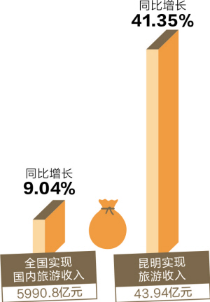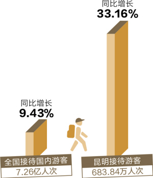 昆明信息港訊(昆明日報(bào) 記者李思凡 王紹芬 蔣卓成 郭曼 杜仲瑩 張章)昨日昆明市旅發(fā)委發(fā)布數(shù)據(jù)顯示,盡管國慶黃金周期間天氣持續(xù)陰冷,昆明旅游市場卻呈現(xiàn)火熱態(tài)勢,接待游客683.84萬人次,同比增長33.16%;實(shí)現(xiàn)旅游收入43.94億元,同比增長41.35%,在旅游經(jīng)濟(jì)持續(xù)較快增長的同時(shí),旅游消費(fèi)升級步伐不減。