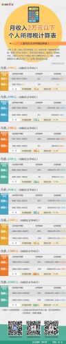 據(jù)國(guó)家稅務(wù)總局網(wǎng)站消息,稅務(wù)總局今日對(duì)外公布“月收入2萬(wàn)元以下個(gè)稅計(jì)算表”,個(gè)稅計(jì)算表顯示,從10月1日起,納稅人實(shí)際取得的工資、薪金所得,減除費(fèi)用標(biāo)準(zhǔn)統(tǒng)一按照5000元/月執(zhí)行,并執(zhí)行新的稅率表。