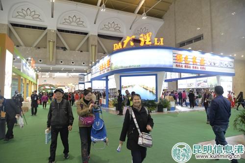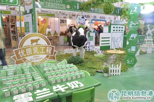 昆明都市現(xiàn)代農(nóng)業(yè)館,面積10000平方米,共有464個(gè)標(biāo)準(zhǔn)展位,參展品有牛奶、尋甸菜牛干巴、楊林肥酒等。