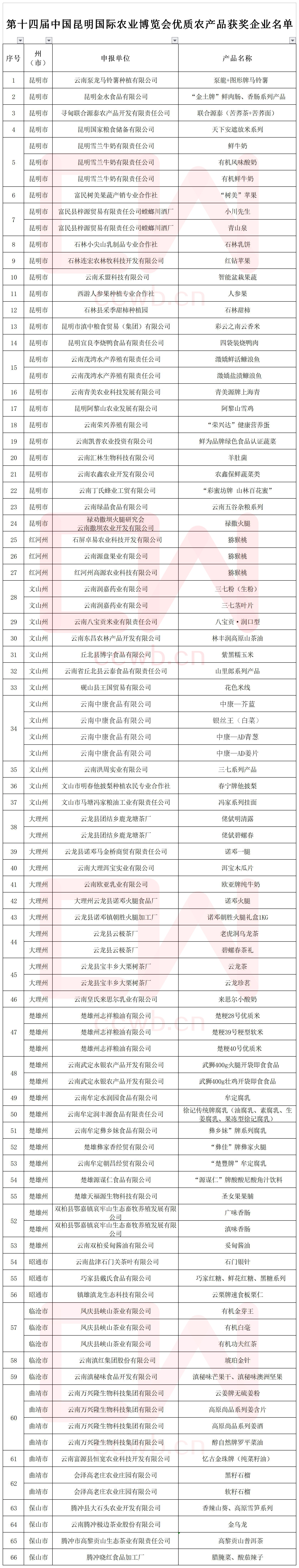 優(yōu)質(zhì)農(nóng)產(chǎn)品獲獎名單