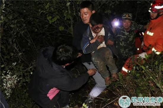 昆明信息港訊 記者勞學麗 通訊員袁正雄 柳川云 10月11日,昭通市魯?shù)榭h樂紅鎮(zhèn)紅布村一懸崖約200米處有一小孩被困,由于懸崖較高,沒有專業(yè)的救援設備,尋找小孩的一名派出所民警和一名家長在下懸崖營救小孩的過程中也相繼被困。昭通魯?shù)橄来箨牻泳鰟雍螅谟暌拐归_了一場驚心動魄的生死大營救。