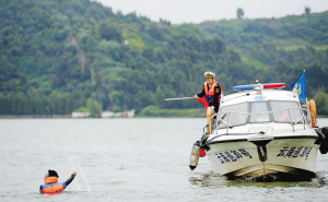昆明信息港訊(昆明日?qǐng)?bào) 記者孫瀟)客船在昆明滇池水域航行時(shí),遭歹徒劫持,情況危急萬分;水警制服歹徒及游客轉(zhuǎn)移過程中多人不慎落水,客船還遭碰撞漏油,水上濃煙滾滾……這是昨日上午在昆明古滇藝海碼頭滇池水域開展的滇池水上搜救打撈綜合應(yīng)急演練中“驚心動(dòng)魄”的一幕。