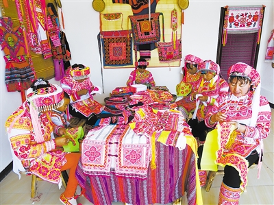 近年來,麒麟?yún)^(qū)東山鎮(zhèn)著力培育民族特色刺繡產(chǎn)業(yè),全力打造“東山繡”品牌,挖掘包裝推介了一批刺繡產(chǎn)品,有效帶動一大批農(nóng)村婦女創(chuàng)收。目前,該鎮(zhèn)有刺繡技藝較好的繡女230余名,建起刺繡基地,開發(fā)了20多個刺繡產(chǎn)品,成功在南博會上展出,刺繡產(chǎn)品遠銷澳大利亞、新西蘭、英國等國家。圖為卑舍村彝族繡女們在刺繡。(曲靖日報 記者劉成龍)