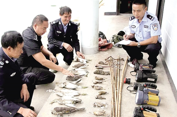 南華縣森林公安局政委謝青明說,為給長(zhǎng)途遷徙的候鳥提供一個(gè)“平安驛站”,在每年白露前后3個(gè)月,南華森林公安都要抽調(diào)大量民警,到大中山等候鳥遷徙的重要地段進(jìn)行宣傳、巡邏,突擊檢查,嚴(yán)厲打擊非法獵捕和販賣野生動(dòng)物及制品行為。