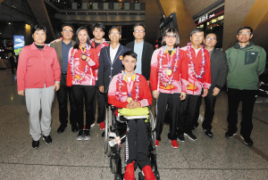圖為參加第三屆亞洲殘疾人運(yùn)動(dòng)會(huì)的云南籍運(yùn)動(dòng)員抵昆。記者劉凱達(dá)/攝