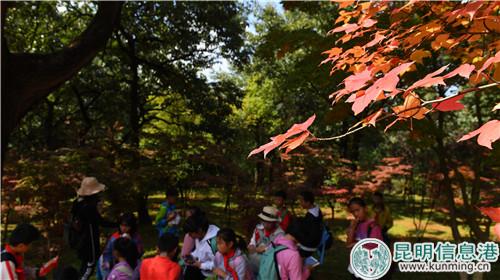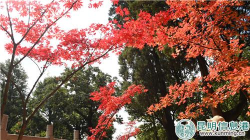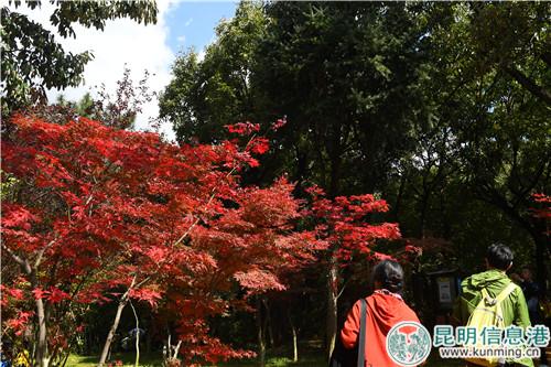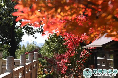 昆明信息港訊 記者楊雁 “停車坐愛楓林晚,霜葉紅于二月花?!睍r下,黑龍?zhí)豆珗@的楓葉已在金秋時節(jié)開始慢慢變紅,位于黑龍?zhí)豆珗@的龍泉山麓上,或紅、或黃、或綠的顏色把公園裝點的繽紛絢麗。2018年10月17日—11月30日,黑龍?zhí)豆珗@啟動“龍?zhí)肚镯崱蓖趵霞谑膶美ッ鳁魅~節(jié)。