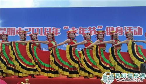 昆明信息港訊 記者黃彩英 10月17日是中國(guó)傳統(tǒng)的重陽(yáng)節(jié),昆明老體協(xié)2018年“老年節(jié)”健身活動(dòng)趁著節(jié)日在昆明瀑布公園舉辦,來(lái)自昆明市33家單位的360名展演人員,為現(xiàn)場(chǎng)的老年朋友和群眾表演了8個(gè)文體展演節(jié)目。