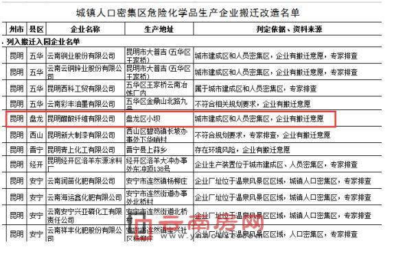 今年3月云南省?;菲髽I(yè)搬遷改造部分名單