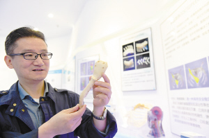 可植入人體的3D打印鎖骨。記者楊艷輝/攝