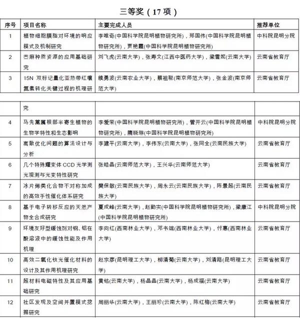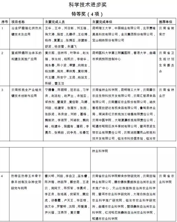 關(guān)于公示2018年度云南省科學(xué)技術(shù)獎(jiǎng)擬獎(jiǎng)勵(lì)項(xiàng)目(人、單位)和獎(jiǎng)勵(lì)等級的通知