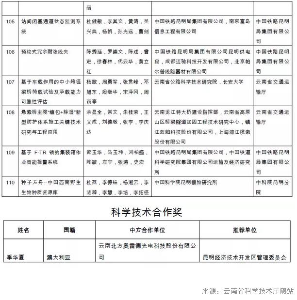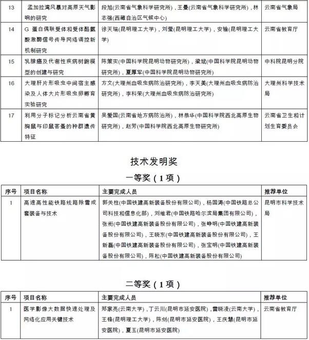 昆明信息港訊 云南省科學(xué)技術(shù)廳15日發(fā)布通知,對2018年度云南省科學(xué)技術(shù)獎(jiǎng)擬獎(jiǎng)勵(lì)項(xiàng)目(人、單位)和獎(jiǎng)勵(lì)等級共110項(xiàng)進(jìn)行公示,其中高鐵線路除雪設(shè)備、醫(yī)學(xué)影像大數(shù)據(jù)快速處理技術(shù)擬分獲技術(shù)發(fā)明一、二等獎(jiǎng)。