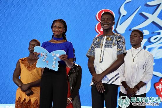 昆明信息港訊 記者蘇雯芊 10月18日晚,“漢語(yǔ)橋”20強(qiáng)隊(duì)伍齊聚昆明市第三中學(xué)體育館,經(jīng)過(guò)一番激烈角逐非洲組喀麥隆隊(duì)、美洲組美國(guó)二隊(duì)、亞洲組朝鮮隊(duì)、歐洲組保加利亞隊(duì)、大洋洲組澳大利亞三隊(duì),共五支隊(duì)伍成功晉級(jí)總決賽。