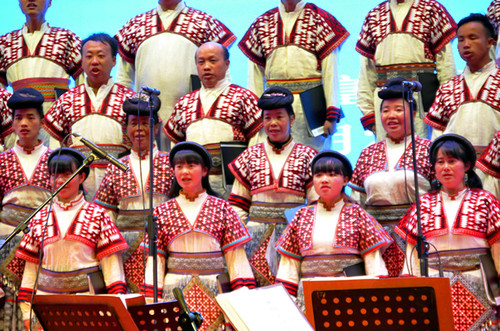 昆明富民縣小水井苗族農(nóng)民合唱團在演唱