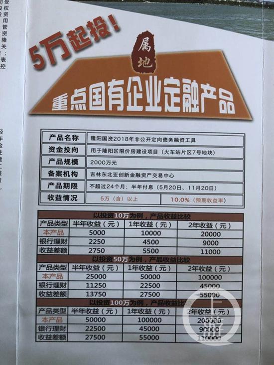 金融投資市場的相關人士對上游新聞表示,從投資收益角度來說,隆陽國資的這一產品的收益率遠遠高于許多銀行出售的理財產品,銀行銷售的理財產品年化收益率只能達到5%左右。該業(yè)內人士表示,隆陽國資的這一產品其實可以通俗理解為地方政府搞的民間借貸,只有當正常的融資途徑都失效后,才有可能通過這一方式進行融資,存在到期不能兌付的風險。
