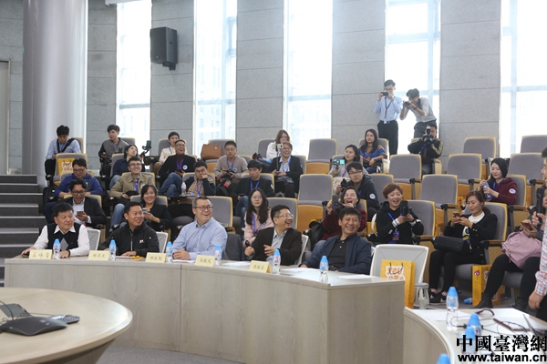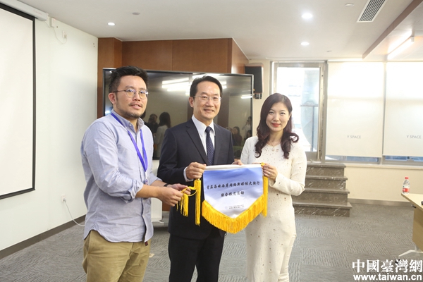 新浪網(wǎng)副總裁鄧慶旭與兩岸新媒體報道團成員進行經(jīng)驗分享。(中國臺灣網(wǎng)陳佳慧/攝)