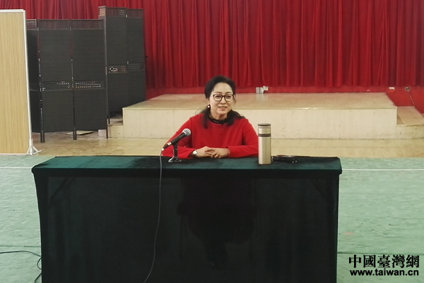 北方昆劇院院長楊鳳一與報道團進行交流。(中國臺灣網(wǎng)陳佳慧/攝)
