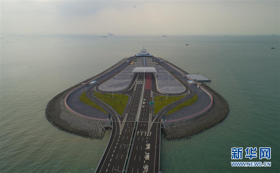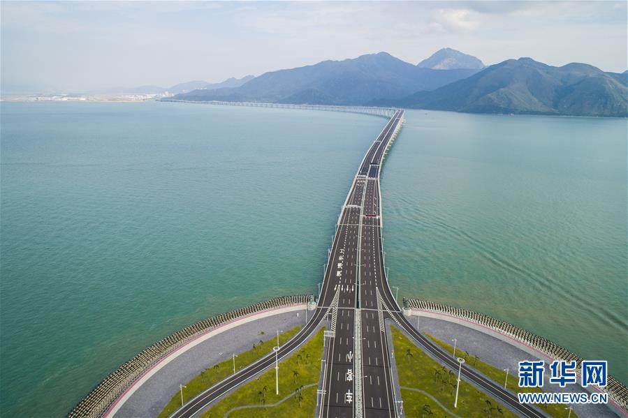 即將于10月24日通車的港珠澳大橋跨越伶仃洋,在香港、珠海和澳門三地之間架起一條直接陸路的通道。港珠澳大橋香港段由東端的香港口岸人工島和向西連接大橋主體的12公里香港接線組成,是這一超級跨海通道的重要組成部分。 (新華社 記者呂小煒)