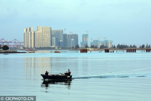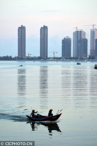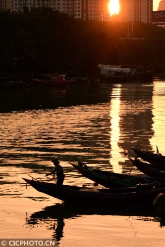 10月23日,海口市的漁民在晨曦中出海歸來。CICPHOTO/蒙鐘德 攝