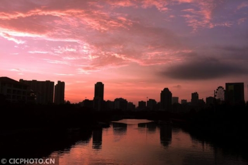 這是10月23日拍攝的海口市美麗朝霞。