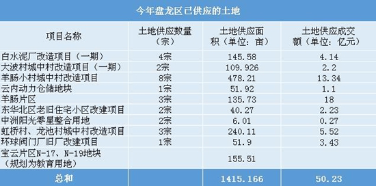 截至目前盤龍區(qū)已供應(yīng)的土地