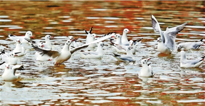 10月26日,近500只紅嘴鷗進(jìn)入昆明市區(qū)大觀河環(huán)西橋水面覓食,讓春城市民格外驚喜,買來(lái)面包款待來(lái)自遠(yuǎn)方的“小精靈”,這也是今年來(lái)昆越冬的紅嘴鷗首次大批進(jìn)入城區(qū)水域。今年是紅嘴鷗連續(xù)到昆明越冬的第34個(gè)年頭,10月初,來(lái)自西伯利亞的紅嘴鷗“先頭部隊(duì)”就已經(jīng)抵達(dá)昆明滇池。(云南日?qǐng)?bào) 記者楊崢)