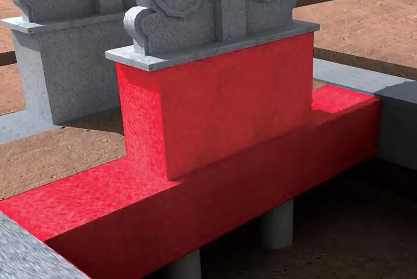 據(jù)了解,忠愛坊將進行原址保護。主要是對牌坊下每個承臺設置包裹縱向梁一根,橫向托梁兩根,采用被動托換法將忠愛坊承臺托換到主體結(jié)構(gòu)體系。