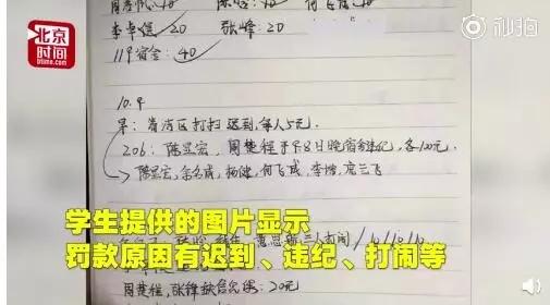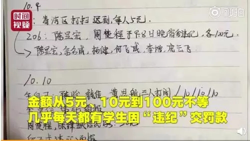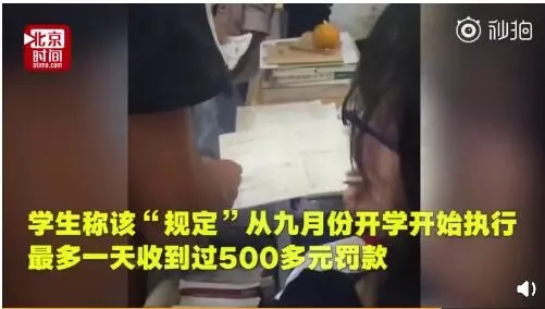 班里學(xué)生稱,該“規(guī)定”從9月開始執(zhí)行,最多一天收500多元罰款。