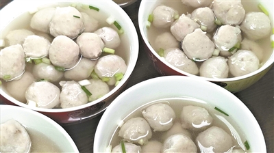 大湖手打肉丸的制作技藝相對(duì)復(fù)雜,一般靠的是錘、掰、推、拼等刀法制作而成。據(jù)大湖市場(chǎng)平記肉丸店師傅何簡(jiǎn)平介紹,大湖手打豬肉丸可做湯也可小炒成菜。做湯時(shí)將肉丸放入鍋里與清水同煮,之后適當(dāng)加入胡椒、食鹽等調(diào)味,半個(gè)小時(shí)后加入蔥花即可;小炒時(shí)可將肉丸切成薄片,在油鍋中清炒熟透后即可食用。