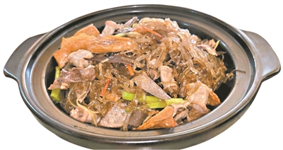 這道菜的做法也很簡(jiǎn)單,先將薯粉絲用清水浸泡軟化后備用,將切好的豬雜料汆水一遍,用水清洗后放入油鍋炒熟,然后投入浸軟的薯粉絲加水和調(diào)味料一起燜煮數(shù)分鐘即可食用。(廣州日?qǐng)?bào) 全媒體記者曾煥陽(yáng)文/圖)