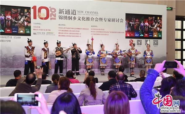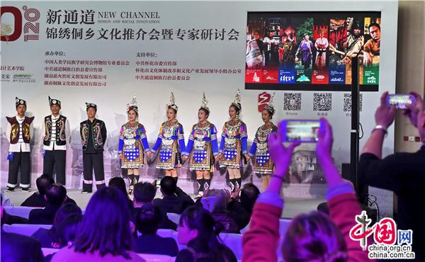 在富有特色的侗族琵琶歌開場(chǎng)的新通道?錦繡侗鄉(xiāng)文化推介會(huì)暨專家研討會(huì)上,通道縣委常委、宣傳部部長(zhǎng)蔡迪文致辭中,希望借此次推介會(huì)打造通道旅游名片,創(chuàng)造更多的文化交流和商貿(mào)合作機(jī)會(huì),促進(jìn)社會(huì)創(chuàng)新與價(jià)值認(rèn)同,協(xié)助懷化市委宣傳部進(jìn)一步促進(jìn)侗族文創(chuàng)開發(fā)與發(fā)展。期間,十九大黨代表、湖南省通道侗族自治縣牙屯堡鎮(zhèn)文坡村黨支部書記粟田梅發(fā)言,感謝社會(huì)各界對(duì)侗族非遺文化的關(guān)注以及湖南大學(xué)設(shè)計(jì)藝術(shù)學(xué)院在這十年間通過(guò)設(shè)計(jì)幫助通道縣脫貧所作出的努力。