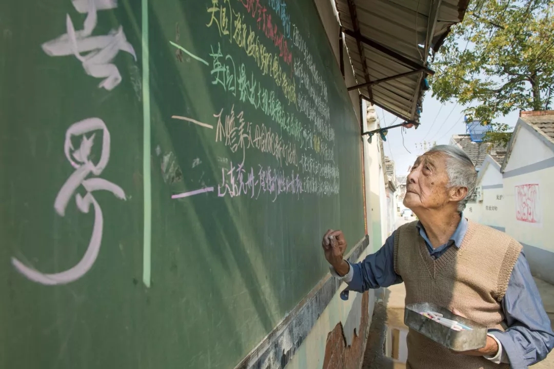 葉連平老師利用村口的黑板辦簡報(bào),讓村民們了解國際國內(nèi)大事。