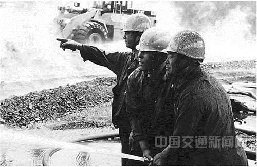 上世紀80年代秦皇島港工人為自燃煤堆滅火。