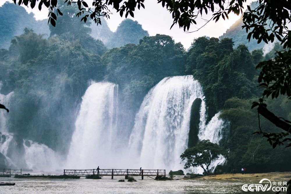 德天跨國瀑布地處峰林平原河道,游人可以走進(jìn)瀑布,可以通過所有感覺器官來感受瀑布,看其形、聽其聲、呼吸含高濃度的負(fù)離子的空氣,用身體感受迷蒙的水霧,享受大自然的沐浴。(央視網(wǎng) 記者韓雪 王博雅 邢明)