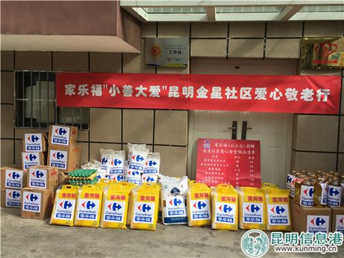 昆明信息港訊 記者張子源 10月29日,家樂福“小善大愛”公益行走進(jìn)金星社區(qū)愛心食堂,為60歲以上的社區(qū)老人們送去一批價值約七千元的大米、食用油、雞蛋、面粉等愛心物資。家樂福此舉是為響應(yīng)金星社區(qū)“敬老愛老”重陽主題,積極支持愛心食堂的良好運(yùn)營,為社區(qū)居民奉獻(xiàn)一片愛心。