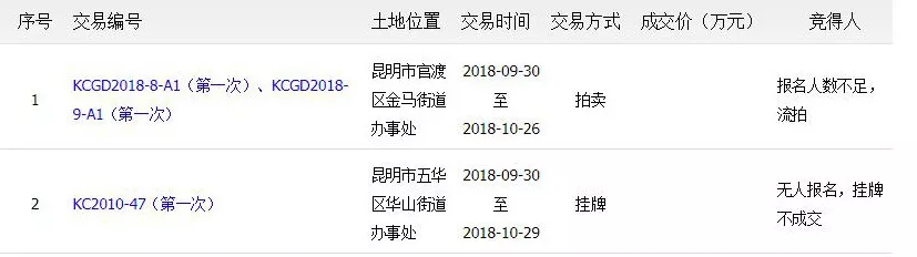 同樣是在10月份,安寧太平新城交易的732畝地(含700畝住宅用地)也因?yàn)闊o(wú)人報(bào)名流拍。加上方旺片區(qū)和原昆八中地塊,昆明光在10月就有三批土地交易失敗。其中,太平新城和方旺片區(qū)的土地還以住宅用地為主。