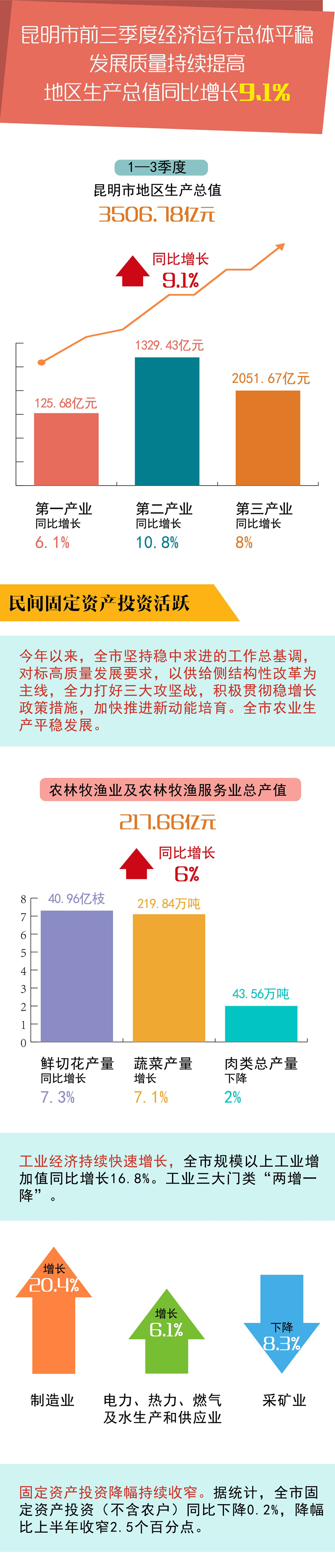 10月29日,昆明市統(tǒng)計(jì)局對(duì)外通報(bào)了今年1—3季度昆明市經(jīng)濟(jì)運(yùn)行情況。值得一提的是昆明前三季度規(guī)模以上工業(yè)增加值增長(zhǎng)16.8%,增速高于全國(guó)10.4個(gè)百分點(diǎn),在全國(guó)省會(huì)城市中排名第一。