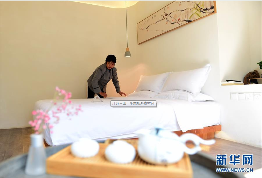 10月27日,在蘇州市吳中區(qū)東山鎮(zhèn)三山村一家民宿,工作人員在整理客房。 新華社記者趙丁喆/攝
