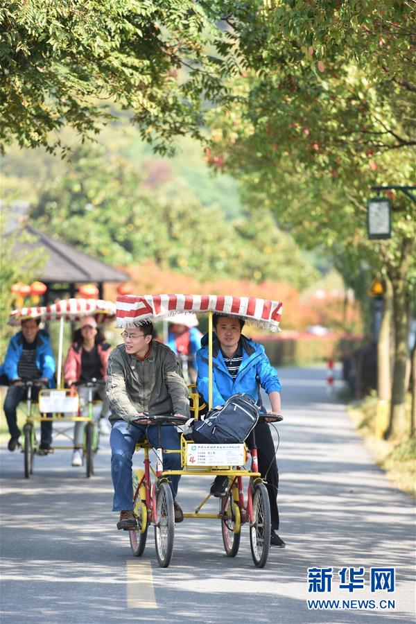 10月27日,在蘇州市吳中區(qū)東山鎮(zhèn)三山村,游客在環(huán)島騎行。 新華社記者王化娟/攝