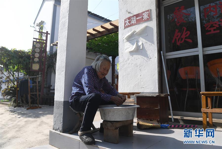 10月27日,在蘇州市吳中區(qū)東山鎮(zhèn)三山村,一位老人在為自家農(nóng)家樂飯店準(zhǔn)備食材。 新華社記者馬晶/攝